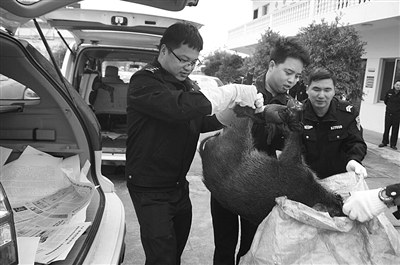 鲍鱼:那还用说!不过好在之前已经有群众和它周旋了一番,它已经有点露疲态了。我们索性就地取材,找来铁锹、棍棒、绳子什么的,又是赶又是打又是套,跟它“斗智斗勇”了半个多小时,总算让它彻底趴下了。