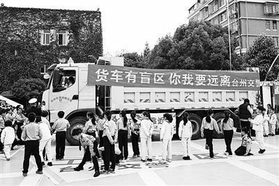 昨日,台州市公安局交通警察局直属一大队民警走进台州市实验小学,上了一堂别开生面的交通安全课。学生们亲身体验了大货车盲区,从而提高警惕。