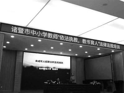 本报讯 近日,诸暨市中小学教师“依法执教,教书育人”法律法规培训在开放双语实验学校报告厅举行。杭州师范大学教授赵春华、浙江师范大学教授宋高初、瑞安市教师发展中心教育法学高级讲师何正跃为老师们举办了精彩的讲座。三位老师分别就人身安全、防治校园欺凌、网络安全、青春期人际交往等方面对与会的老师们进行了讲解。