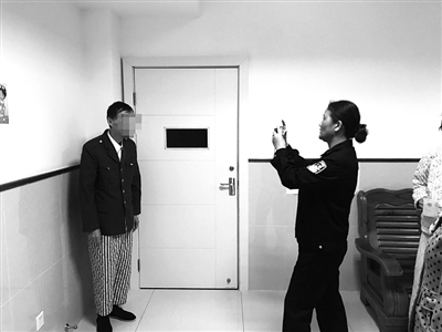在医院病房,郭某换上了自己热爱的一件军绿色军装,詹雁在帮老人整理衣领后,便拿出相机采集人像照片。随后,詹雁又打开电脑,熟练地为郭某录入指纹信息。