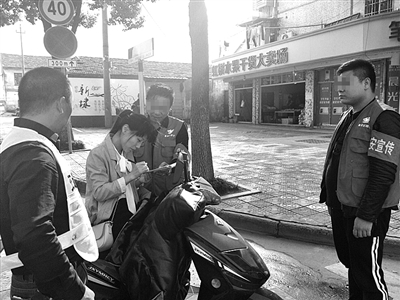 | 党员志愿者带领社区服刑人员上街宣传平安知识 |
