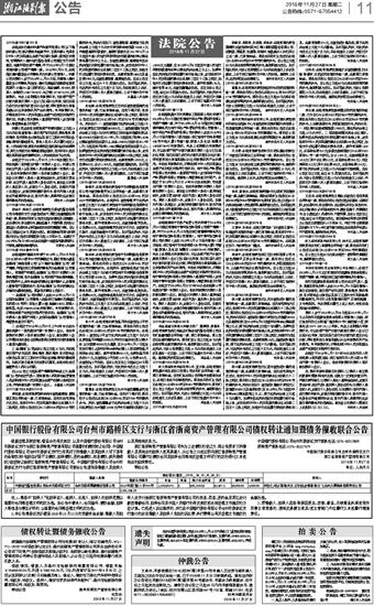 中国银行股份有限公司台州市路桥区支行与浙江省浙商资产管理有限公司债权转让通知暨债务催收联合公告