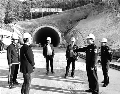 连日来,天台县公安局组织开展民爆作业安全大检查,全面彻底查隐患、堵漏洞。图为28日民警对杭绍台高铁天台幸福隧道爆破作业点进行安全检查。通讯员 许尚高 摄