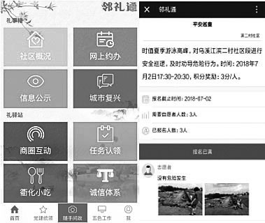 “我们还可以在手机上‘抢单’哩,只要完成随手捡垃圾的小事,就可以兑换积分。到了年底,根据我们的积分,可以得到社区发的小礼品呢!”张大妈说,在“邻礼通”平台上,居民通过线上抢单,在线下解决问题,社区会根据任务积分进行奖励,实现真正的社区“生态平衡”。