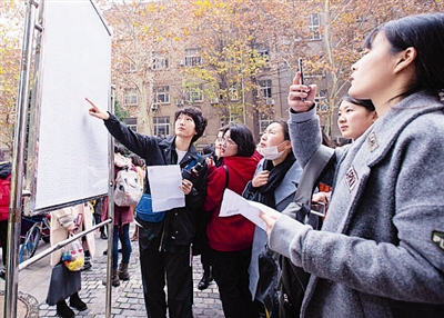 | 考生在南京林业大学考点查看考场安排表 新华社 |