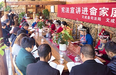 在泰顺县,当地司法局别出心裁地将宪法宣传与非物质文化遗产——木偶戏相结合,通过传统文化传递法律知识。“法律知识不好懂,通过木偶戏演出来,好理解多了,方言也听着很亲切。”一个多小时的木偶戏表演生动直观、通俗易懂,引得在场村民阵阵喝彩。