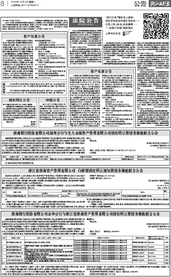 浙商银行股份有限公司金华分行与浙江省浙商资产管理有限公司债权转让暨债务催收联合公告