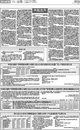 浙江省分公司对宁波博睿进出口有限公司等7户企业债权资产处置公告