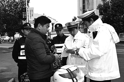 12月6日,三门县公安局沙柳派出所联合县交警大队城关中队,在沙柳辖区各交通要道开展“上牌才能上路 上路先戴头盔”宣传整治活动。