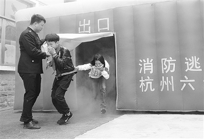 消防体验屋里学逃生