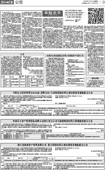 浙江省浙商资产管理有限公司 陈天明债权转让通知暨债务催收联合公告