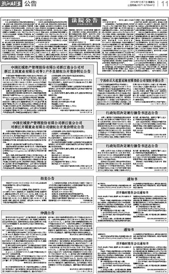 中国长城资产管理股份有限公司浙江省分公司对 浙江上顶置业有限公司等2户不良债权公开竞价转让公告
