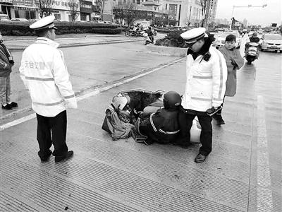 | 昨天,天台县雨雪交加,但在一起交通事故现场,却发生了令人暖心的一幕。 当天上午,天台县交警大队城西中队民警王太荣,辅警陈晓锋、叶坚等,驾驶警车巡逻至天台山西路上三高速入口附近时,发现这里发生了一起交通事故,一辆二轮摩托车倒在地上,车旁仰躺着一位60岁左右的伤者。由于事发路段人多车多,加上雨雪天视线不好,为避免二次事故的发生,王太荣等人立即上前维持秩序,并拨打120呼救。等待救护车过程中,为防止老人躺在地上受凉,陈晓锋扶起老人,让老人靠在他的腿上(陈晓锋腰部曾受伤,无法长时间深蹲),王太荣等人则不停安慰老人,分散他的注意力,减轻痛苦,直到救护车到达。目前,老人正在医院接受救治,事故仍在进一步调查中。 通讯员 林华强 |