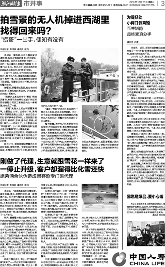 拍雪景的无人机掉进西湖里 找得回来吗?