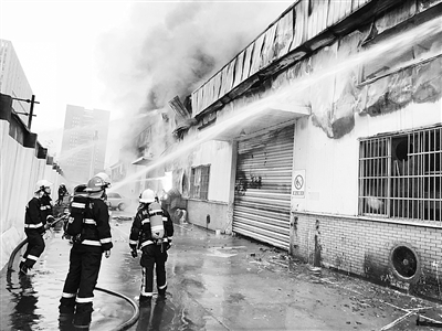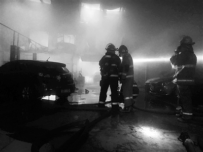 消防人员赶到现场时,起火的建筑内已经处于猛烈燃烧状态,大量浓烟从建筑内部涌出。据初步了解,起火建筑为局部2层钢结构的维修车间,燃烧位置为汽车部件。