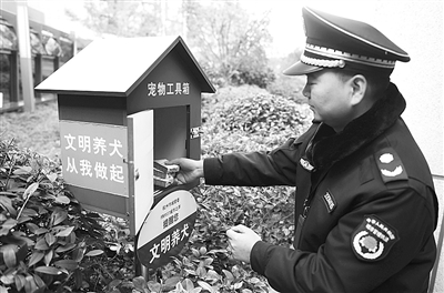 记者在活动现场看到,作为“黄粉笔”行动的试点社区,杭州城市芯宇小区专门在社区里设置了宠物工具箱,并在里面放置了黄粉笔、垃圾袋和一次性手套等工具。西湖区城市管理局局长杜旭侠介绍,用黄色粉笔做标记在夜间也能引人注意,且黄粉笔有“黄牌”警示之意,当没有清理狗粪的狗主人再次经过时,黄圈能引起其注意,提醒他(她)注意自己的责任。据统计,11月15日至12月9日,杭州共查处各类养犬违规行为1507件,申请犬证办理22845本。