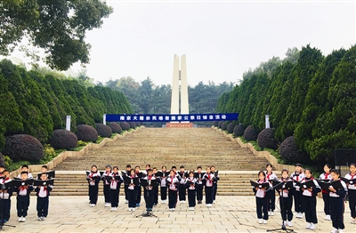昨天是南京大屠杀死难者国家公祭日。当天上午,浙江革命烈士纪念馆参与全国联动公祭,同步举行悼念活动。新四军老战士、抗战烈士家属及各界干部群众450余人到场参加悼念活动。图为50名少先队员在现场诗朗诵,告慰逝者、惕厉生者。 通讯员 万晓青 摄