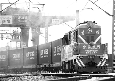 | 装载着进口沃尔沃汽车的“长安号”中欧班列抵达西安港西安铁路集装箱中心站。该专列从比利时根特出发,经过16天时间抵达西安港。新华社 李一博 摄 |