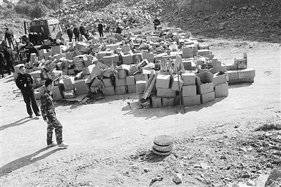 今年以来,温州市公安局龙湾区分局对无证非法经营烟花爆竹行为进行了严厉打击,共收缴非法烟花爆竹5734件,破获烟花爆竹类案件30起,抓获违法犯罪嫌疑人49名。图为警方对收缴的非法烟花爆竹进行集中销毁。通讯员 杨继划 摄