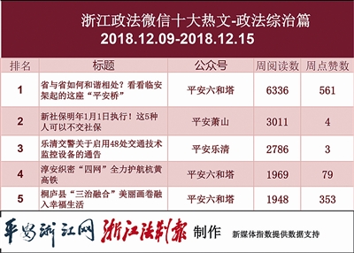 本期政法委榜,“平安六和塔”夺魁,《省与省如何和谐相处?看看临安架起的这座“平安桥”》一文受到广泛关注,阅读数和点赞数双双领跑榜单。杭州市临安区着力打造省际“平安边界”,建立联情、联调、联宣、联矫“四联”机制,有力地维护了接边地区的和谐稳定。