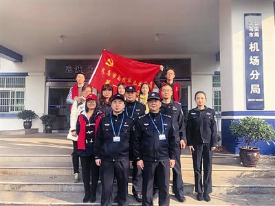 12月1日上午,机场分局党支部联合义乌高校毕业生党总支第一支部开展“共建美丽机场”活动,在机场分局庭院清除杂草、杂物、落叶,在航站楼进行文明劝导。