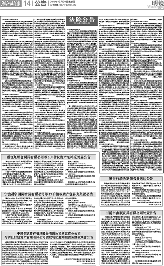 宁波晟宇国际贸易有限公司等17户债权资产包补充处置公告