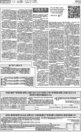 中国长城资产管理股份有限公司浙江省分公司与中国东方资产管理股份有限公司浙江省分公司 债权转让暨债务催收联合公告