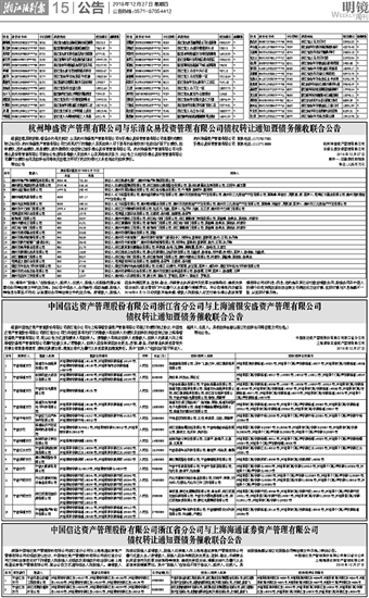 中国信达资产管理股份有限公司浙江省分公司与上海浦银安盛资产管理有限公司 债权转让通知暨债务催收联合公告