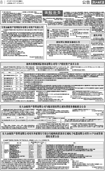 温州市展翔国际贸易有限公司等7户债权资产竞买公告