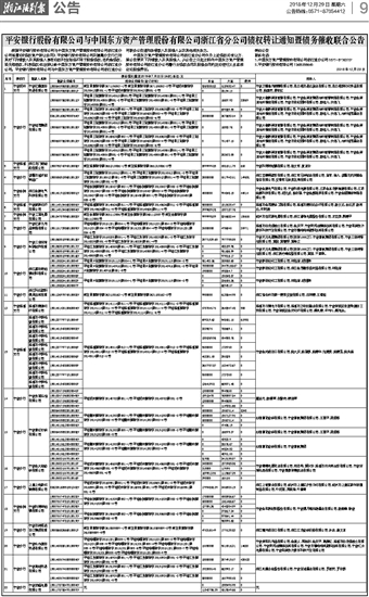 平安银行股份有限公司与中国东方资产管理股份有限公司浙江省分公司债权转让通知暨债务催收联合公告