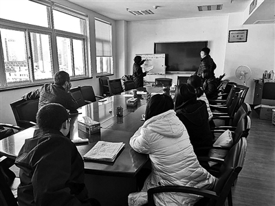 | 李鹏伟与同事讨论案情 |