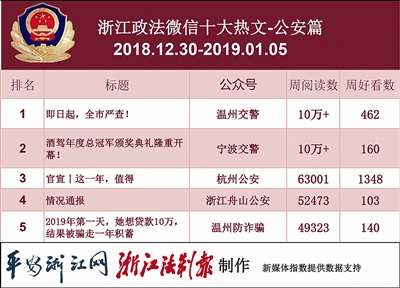 本期公安榜热文榜,两篇热文的阅读数冲上了10万。分别是“温州交警”的《即日起,全市严查!》和“宁波交警”的《酒驾年度总冠军颁奖典礼隆重开幕!》。小编还是得提醒一句,开车不喝酒,喝酒不开车!