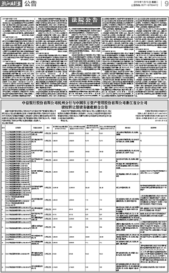 中信银行股份有限公司杭州分行与中国东方资产管理股份有限公司浙江省分公司 债权转让暨债务催收联合公告