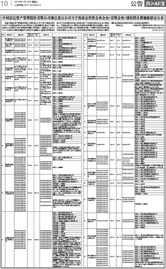 中国信达资产管理股份有限公司浙江省分公司与宁波南合投资合伙企业(有限合伙)债权转让暨催收联合公告