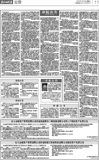 光大金瓯资产管理有限公司持有的诸暨市三峰机械有限公司等2户债权资产处置公告