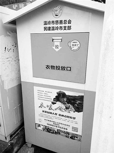 “这箱子放这一年多了,我还往里放过好几次衣服呢。”小区居民黄大爷说,小区门口就有一个慈善总会的“绿房子”,仔细一想,这箱子确实和慈善总会的不一样,回收人员的衣着也不一样。他看到过慈善总会的人来回收都是穿着消毒服,另一波人却衣着不规范。