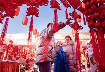 新春佳节将近,河北省正定县正定镇的年货大集上年味渐浓。