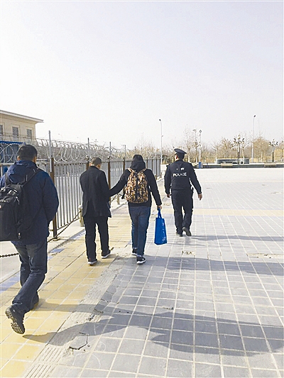 | 犯罪嫌疑人赵某(左二)被镇海警方押回。 |