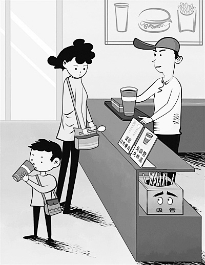 打包要用塑料盒、吃泡面要配塑料叉,这是很多人习以为常的消费习惯。因为使用方便、成本低廉,其危害性很容易被人们视而不见——塑料的降解需要上百年时间,会给环境带来巨大压力。近期,北京、香港等地的一些快餐厅开始尝试不主动向顾客提供吸管、杯盖并鼓励自带餐具,引导顾客从小事做起,减少一次性塑料制品的使用。这正是:使用一时半刻,降解年深日久。限塑任重道远,先从小处着手。魏寅 图 石羚 文