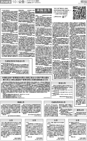 中国信达资产管理股份有限公司浙江省分公司资产转让通知 暨与受让方浙江润进资产管理有限公司债权催收联合公告