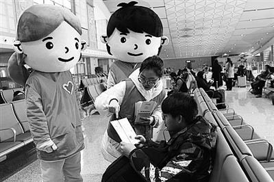 近日,国网桐庐县供电公司红船党员服务队参加杭黄高铁桐庐站春运志愿服务“暖冬行动”。除了向旅客讲解自助购票机操作方式、维护秩序及进站引导、帮助旅客搬运行李等,党员志愿者还为旅客们发放安全用电知识手册,提醒旅客在春节期间要注意家庭用电安全。通讯员 冯清