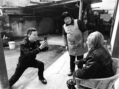 年关将至,王家井派出所全力开展了大走访活动,践行“最多跑一次”改革,主动发现辖区群众实际困难并积极解决。顾一男走访了解到了蒋奶奶不便的情况,便为她提供上门制证服务。拍照后的第二天,顾警官再次来到蒋奶奶家里,为其拍照取指纹,让老人家足不出户就办好了证件,实现了“零跑腿”。