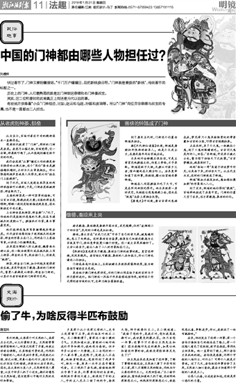 到了汉代,百姓又发现自然界里的两种动植物可以避邪,于是,门神老虎就被神荼、郁垒取代了。