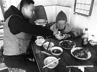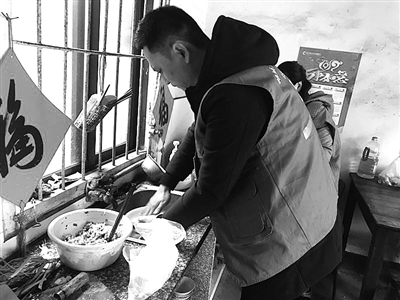于是,下午4点多,在全部的网格步巡工作结束之后,我赶到菜场精心挑选了一些过年的菜品和包饺子的食材,然后赶到冯奶奶家。贴上对联,生火做饭,包上热气腾腾的饺子,烧条“年年有鱼”,煮上一盘红烧肉。顿时,冯奶奶的屋子变得喜庆起来,浓浓的年味儿伴着热腾腾的饭菜香飘散开来……看到奶奶脸上露出久违的笑容,我也笑了起来。