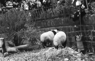 惊险!女童坐围栏看熊猫跌落圈舍 仨熊猫踱步围观