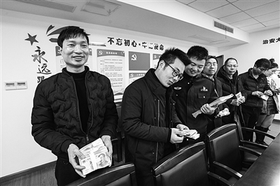本报讯 昨天是大多数上班族的开工第一天,在台州市公安局黄岩区分局治安大队,8名工人们终于领到了四年前的工资共29万元,算是新一年的好兆头。