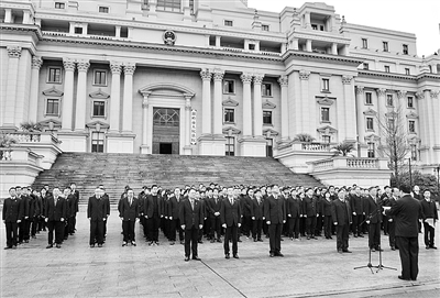 2月11日,温岭市法院组织全体干警参加升国旗仪式。院长陈文通要求法院干警们迅速投入工作,勇当先锋、争创佳绩,在新的一年实现更大的突破。 通讯员 张祖豪 张晓