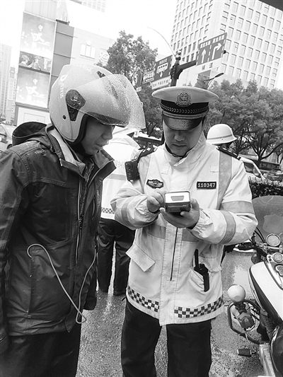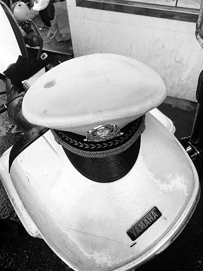 雨连续不断地下着,陈勇森的帽子和衣服很快就滴出水来。但由于需要操作“警务通”,为了方便,他没有撑伞,只是一遍遍地擦拭着“警务通”,“这机子打湿了,触屏就会受影响,执法效率也跟着受影响,所以尽量不让它湿。至于帽子和衣服,我们都习惯了,下班拿回家晾晾就好了。”陈勇森告诉记者,其实他有好几套警服和帽子,但平常出勤他一般只穿那一套旧的,因为经常会遇到特殊情况弄脏衣服。