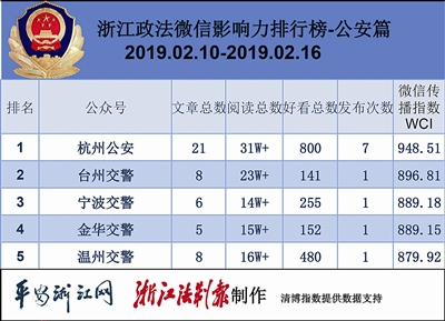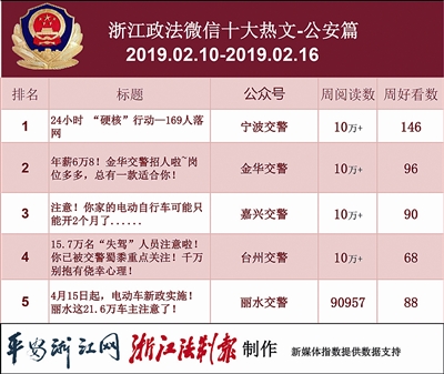 公安榜,可谓是10万+美文的盛产之地。本期4篇10万+美文全部出自公安榜,它们分别是来自“宁波交警”的《24小时“硬核”行动——169人落网》、“金华交警”的《年薪6万8!金华交警招人啦~岗位多多,总有一款适合你!》、“嘉兴交警”的《注意!你家的电动自行车可能只能开2个月了……》、“台州交警”的《15.7万名“失驾”人员注意啦!你已被交警蜀黍重点关注!千万别抱有侥幸心理!》。平安出行,事关你我他,人人都关注的信息,自然不缺阅读量咯!
