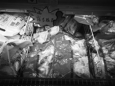 正值元宵,杭州市世纪联华(凤起路店)食品冷冻区一片火热,不少消费者在挑选汤圆。记者发现,冷冻区还陈列着几款“三全”水饺,这些水饺被降价处理,并贴有“店长推荐”标识牌。比如,原价22.6元一包的“三全状元清脆荠菜猪肉水饺”,现在25.8元两包。